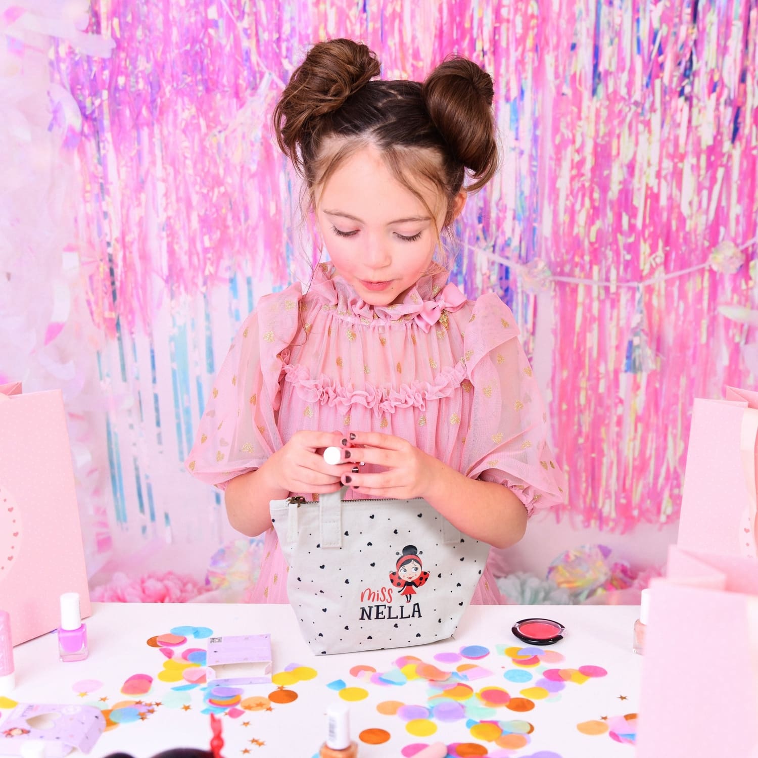 Mach dich bereit, mit der Miss Nella Glam Picks Bag zu glänzen - eine Schatztruhe voller Glitzer, Stil und endloser Fantasie! Von fabelhaften Spielverabredungen bis hin zu Mini-Make-ups - diese bezaubernde Tasche ist der Reisepass deines Kindes in eine Welt voller Glamour und Spaß.