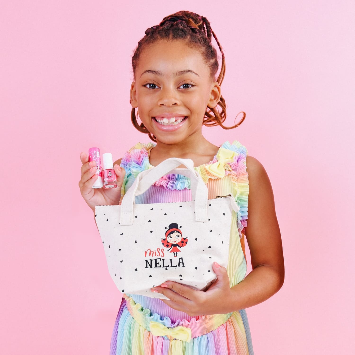 Für die Herstellung der Miss Nella's Girly Girl Tasche haben wir umweltfreundliche Materialien verwendet. Der von uns verwendete Stoff ist strapazierfähig und langlebig.