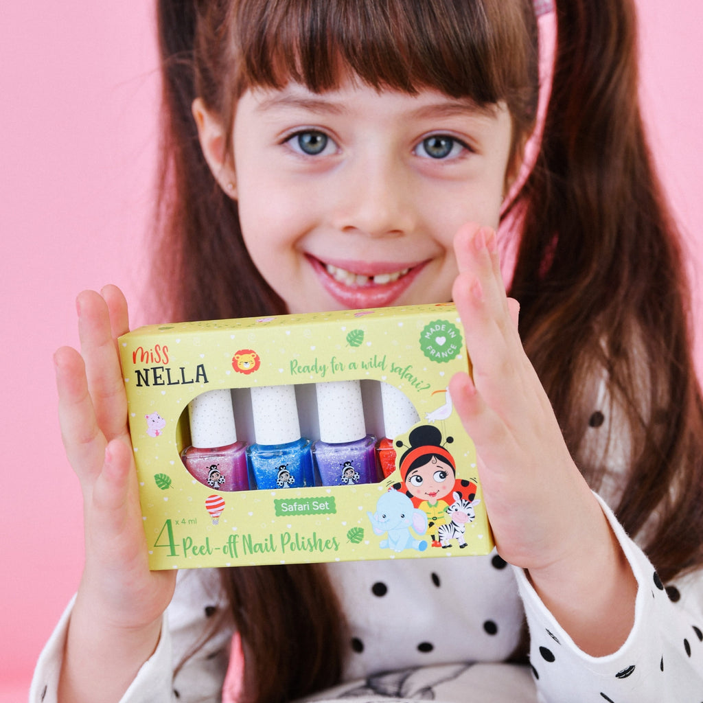 Die Miss Nella Safari 4er-Kollektion ist die perfekte Möglichkeit für deine Kleinen, eine Welt voller Farben und Spaß zu entdecken. Mit jeder Farbe, die von der Schönheit der Wildnis inspiriert ist, können sie ihre eigenen, von der Safari inspirierten Nagellooks kreieren. Von kräftigen, leuchtenden Farben bis hin zu sanfteren, von der Natur inspirierten Tönen - mit diesem Set können sie sich auf einfachste Weise ausdrücken - einfach abziehen und loslegen! 🌿✨🌿✨